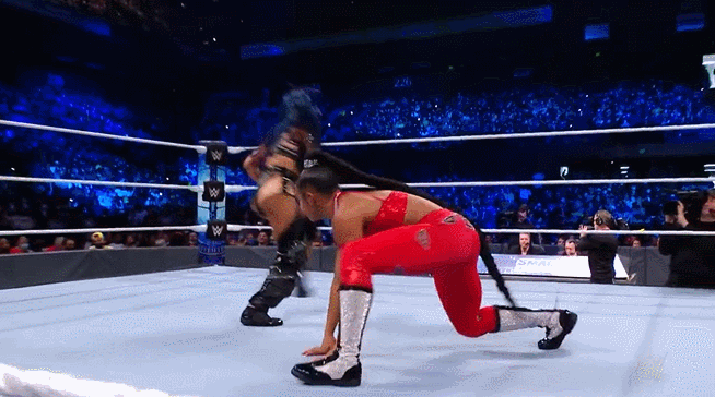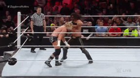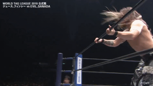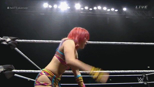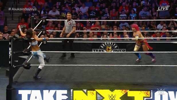 Running Hip Attack off of the apron/middle rope.