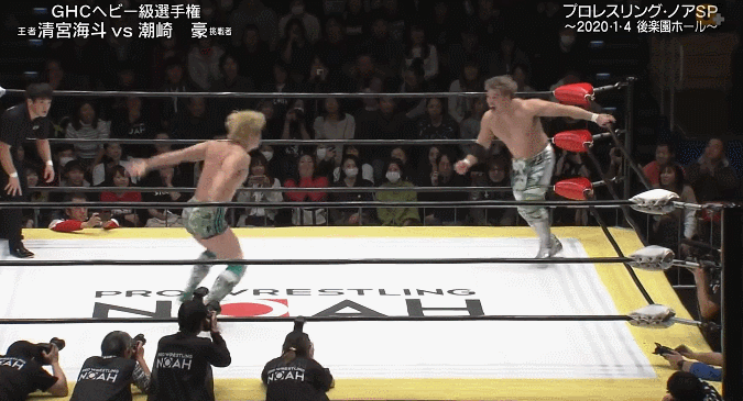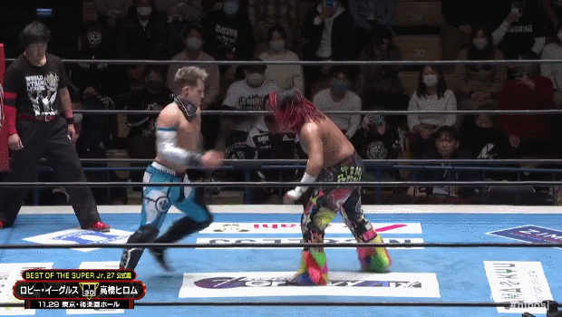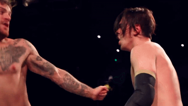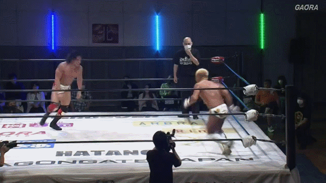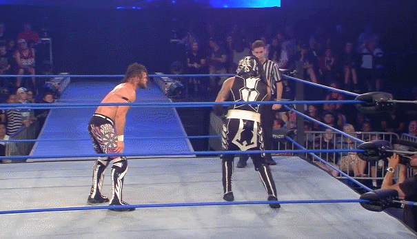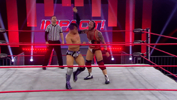 Running Hip Attack into the corner.